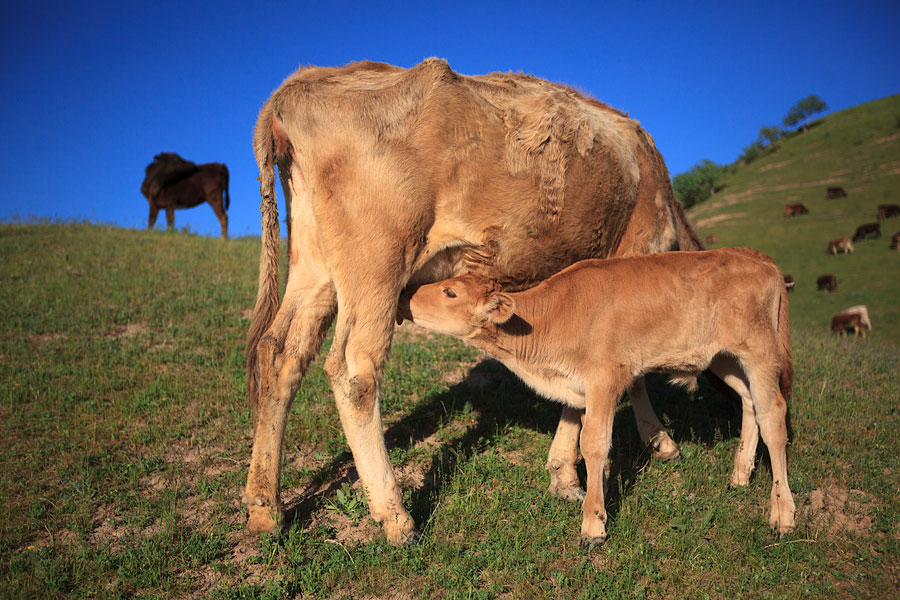 Теленок присосался к матери. Цветокоррекцию не проводил, цвета и так понравились. Canon 16-35/2.8L USM II